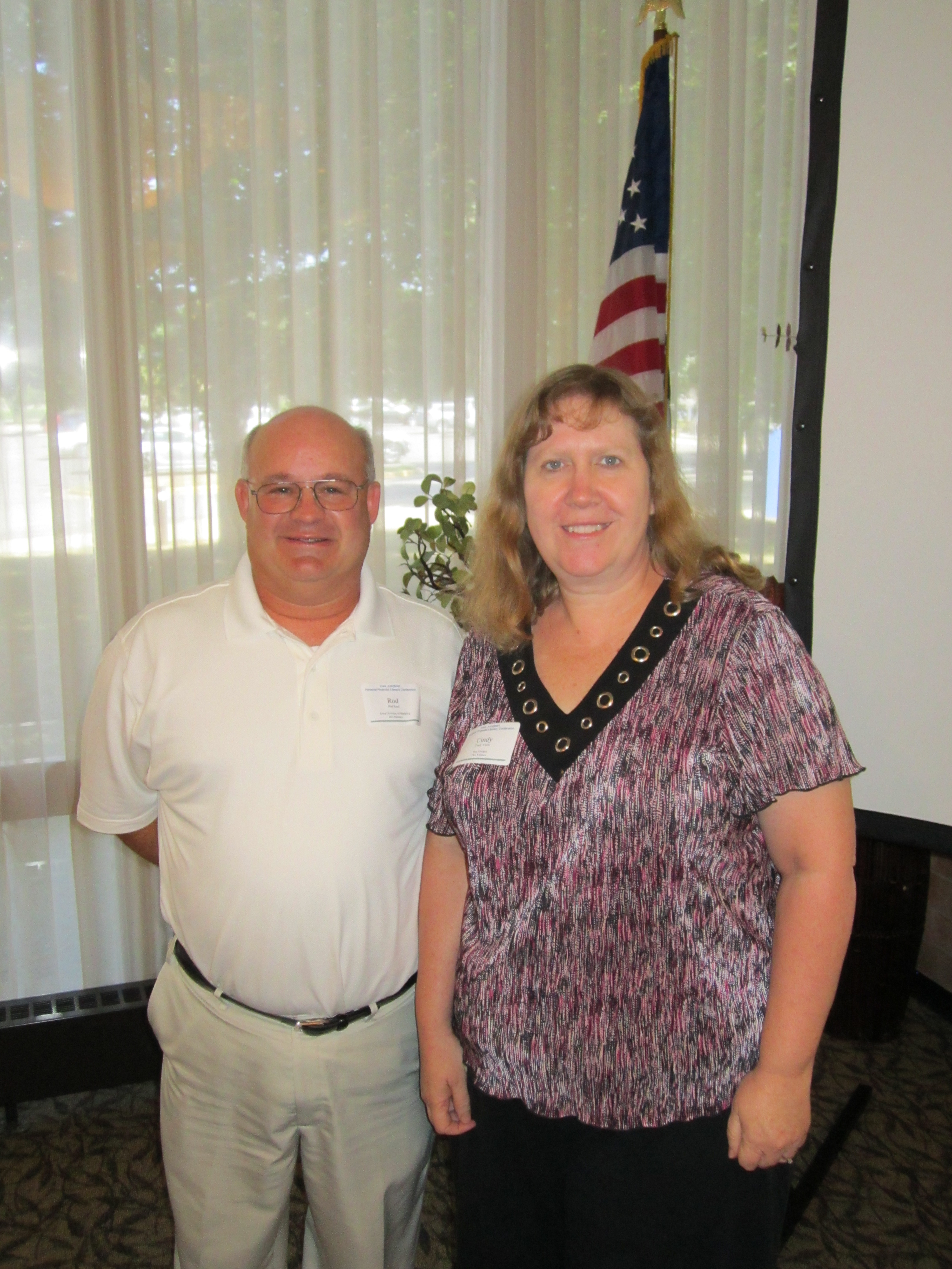The picture shows Rod Reed, President of the Iowa Jump$tart Coalition, and Cindy Weeks, Business Teacher at Roosevelt High School.